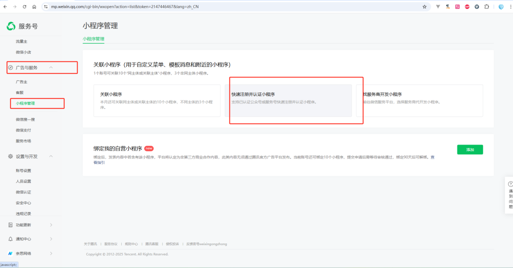 填写一个未使用过的邮箱来管理这个小程序,再绑定一个管理员